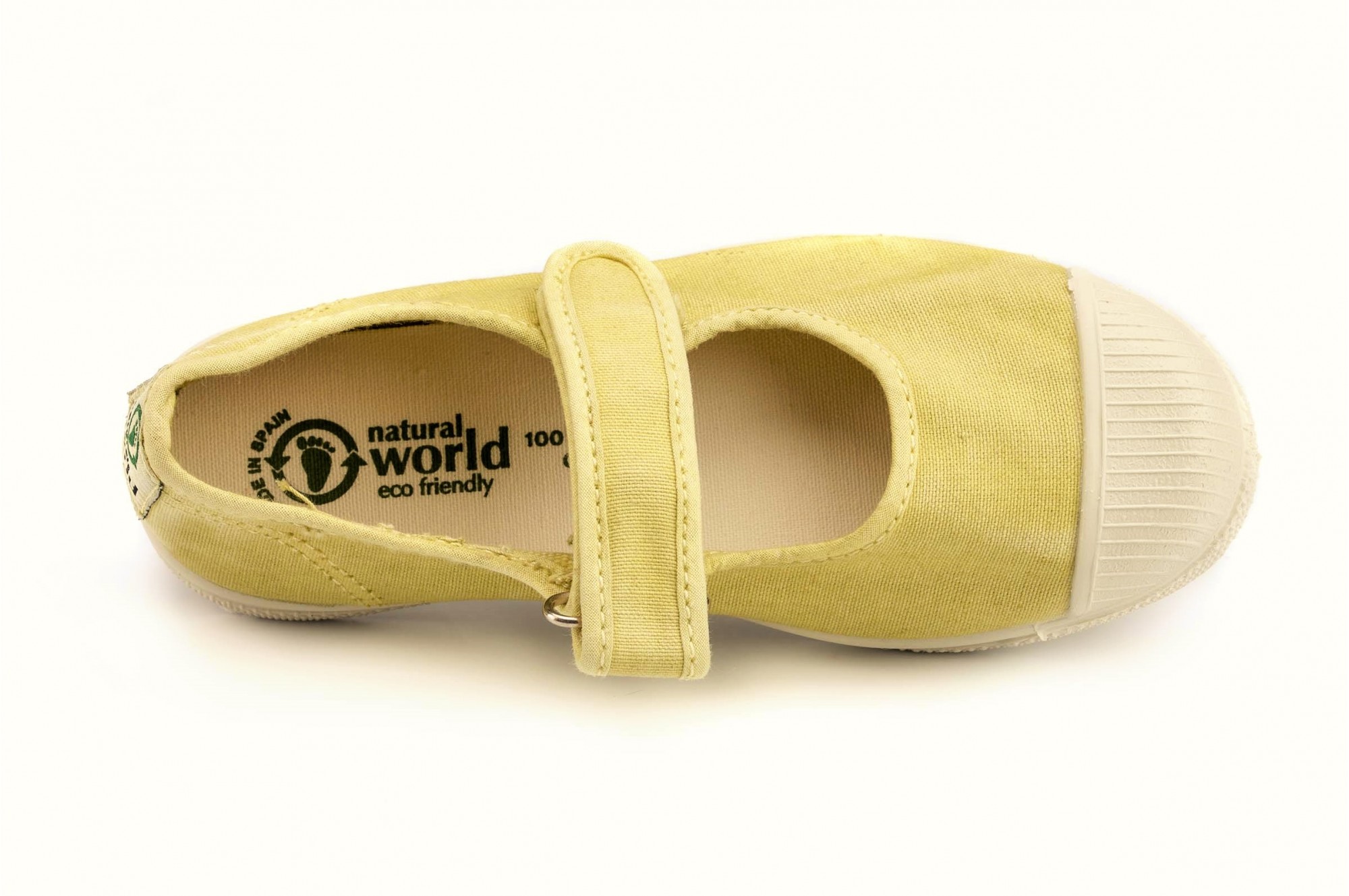 Tenisi Natural World pentru copii, model Mercedes 476, Galben Sunny, aspect Stone-Washed