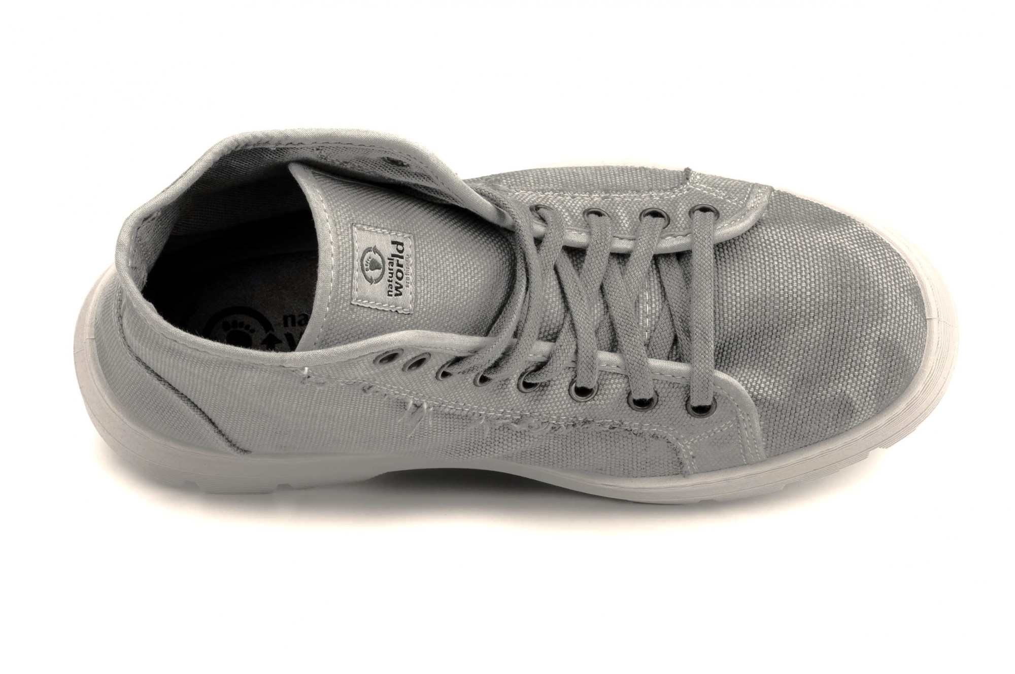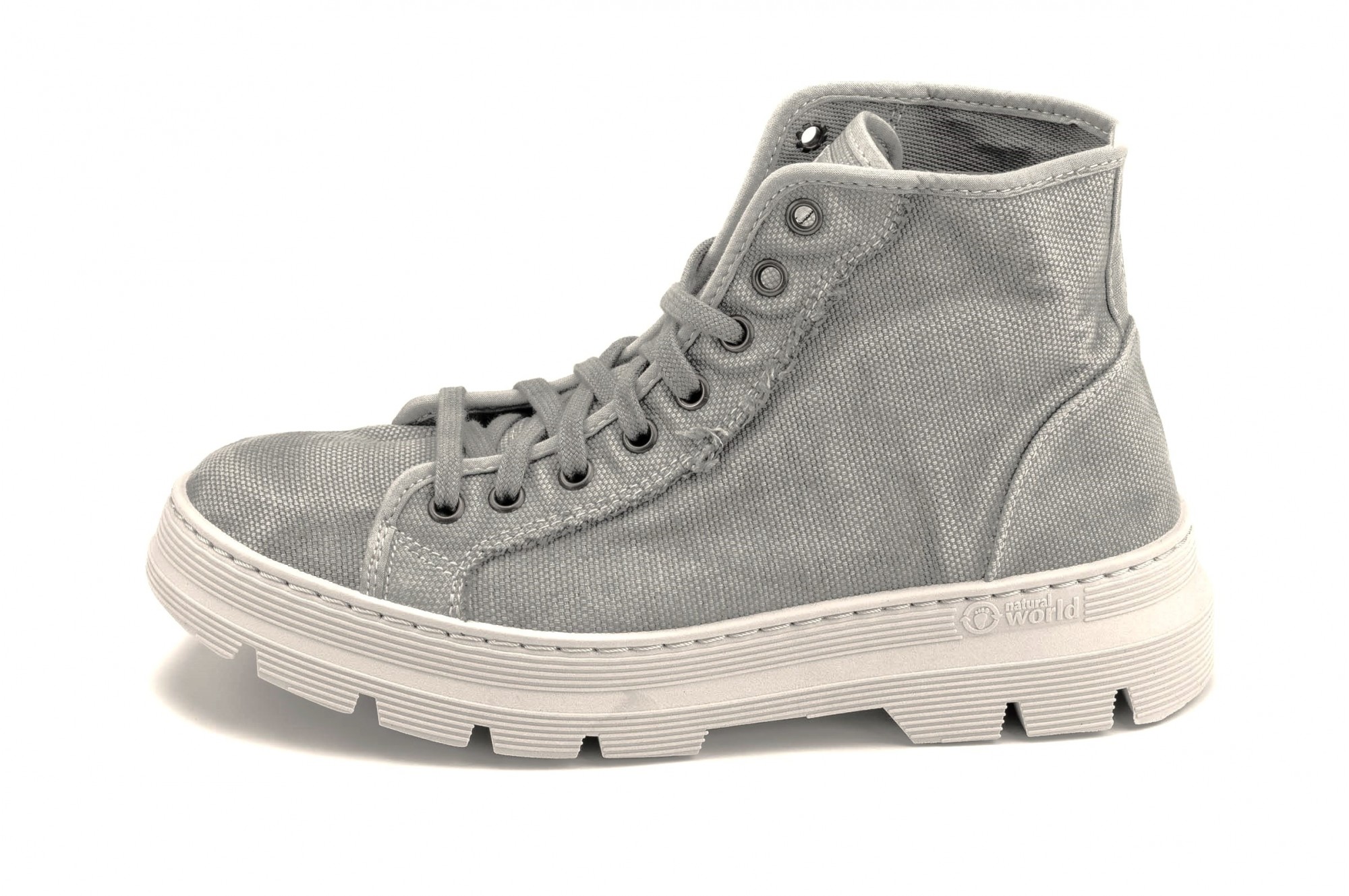 Natural World - 100% confectionate manual in Spania, materiale naturale 100% eco-friendly, inspirate din dragostea pentru natura. Ghetele Natural World imbina stilul sport cu cel casual, panza de bumbac organic si flexibilitatea talpii facandu-le potrivite atat pentru purtarea zilnica prin oras, cat si pentru activitati in aer liber. Panza rezistenta (necaptusita) din bumbac asigura respiratia piciorului si confort termic. Talpa din cauciuc flexibil, cu profil mare, asigura confort si siguranta, indiferent de tipul terenului. Designul lor cu inchidere cu siret cu 8 gauri, le confera un aspect sport si asigura fixarea foarte buna pe picior. Masuri: 36-46