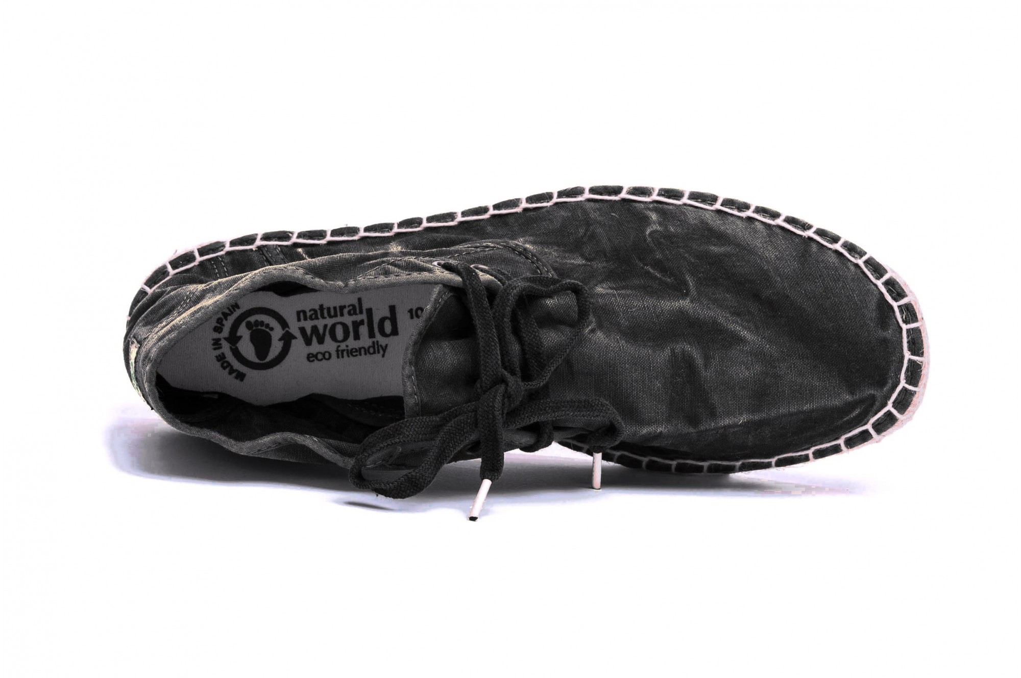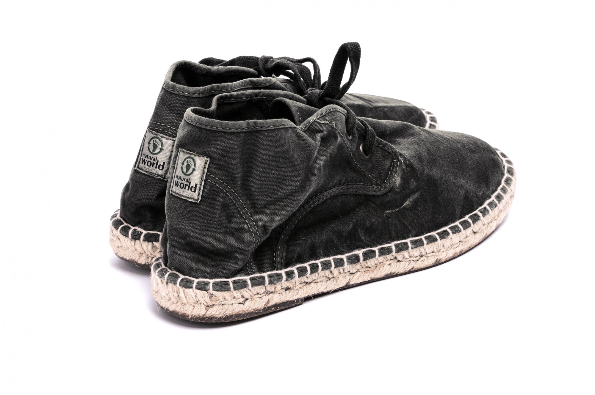 Espadrile Natural World, model Safari Yute 326, Negru, aspect Stone-Washed