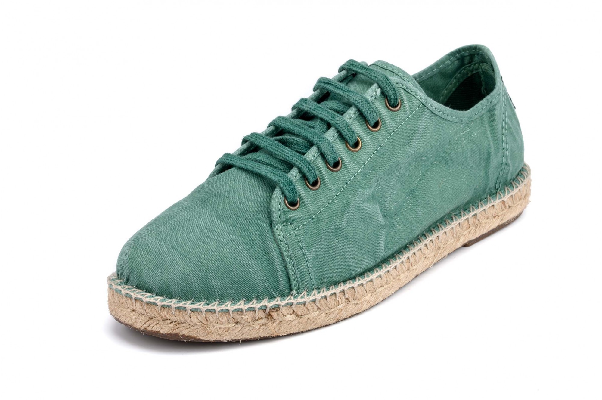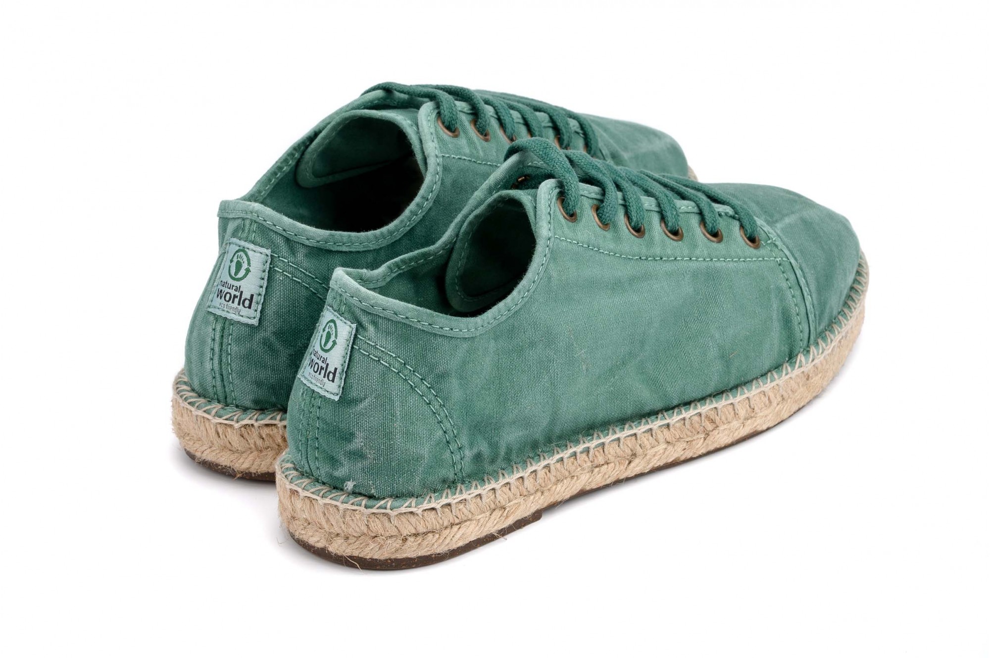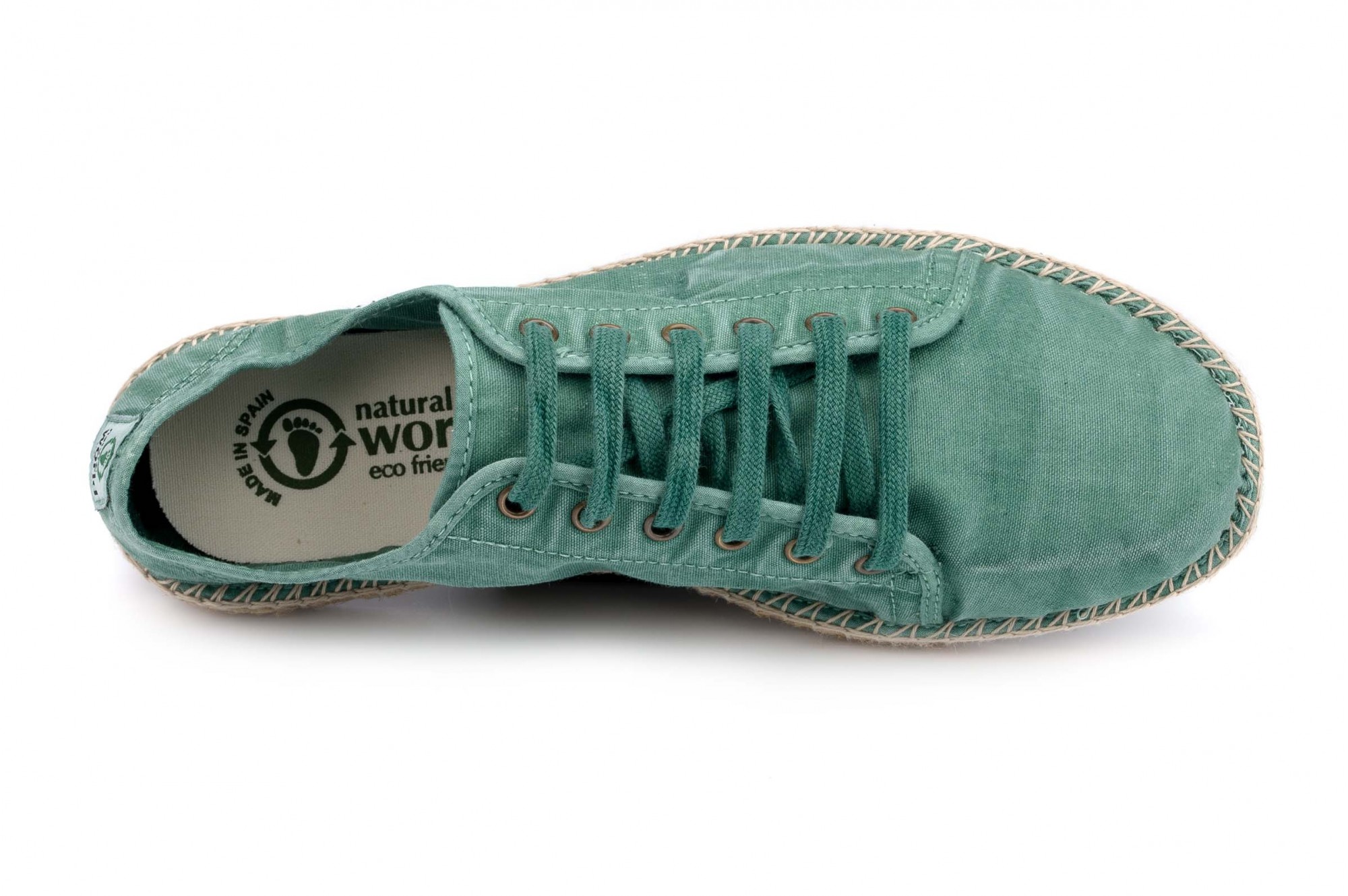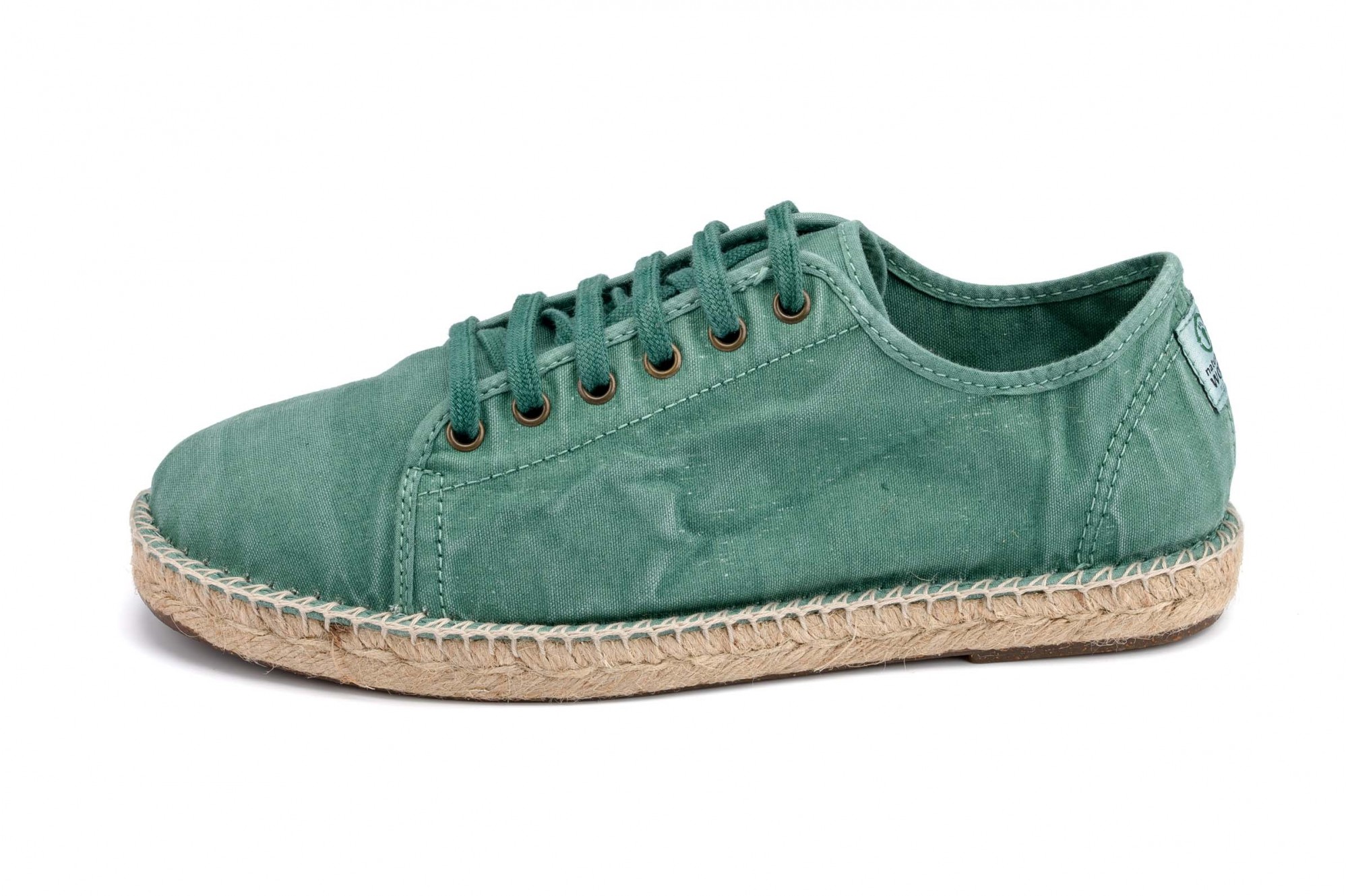 Espadrile Natural World, model Basket Yute 321, Verde Albahaca, aspect Stone-Washed