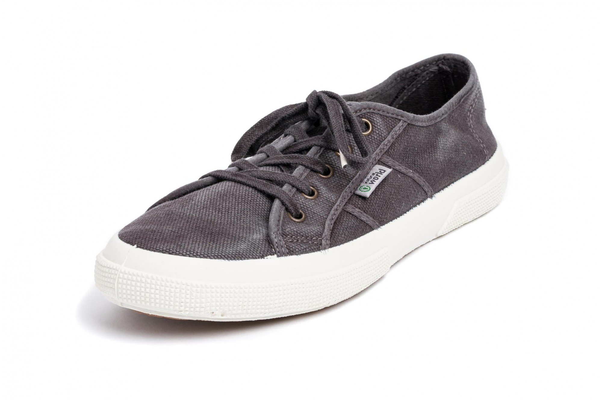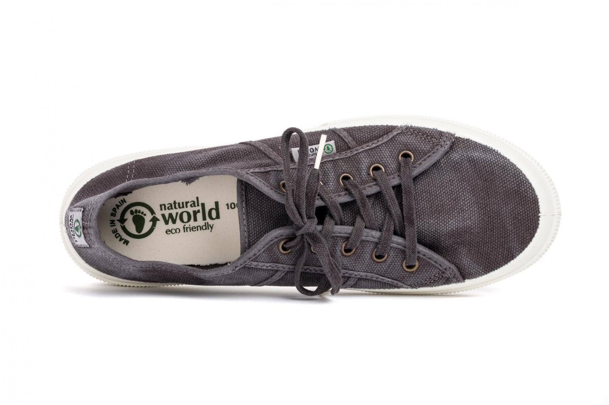 Natural World - 100% confectionate manual in Spania, materiale naturale 100% eco-friendly, inspirate din dragostea pentru natura. Tenisii Natural World imbina stilul sport cu cel casual, panza de bumbac organic si flexibilitatea talpii facandu-i potriviti atat pentru purtarea zilnica prin oras, cat si pentru activitati in aer liber. Panza rezistenta (necaptusita) din bumbac asigura respiratia piciorului si confort termic. Talpa din cauciuc este vulcanizata (presata la temperatura inalta), fara a se utiliza adezivi, vulcanizarea garantand unirea perfecta intre talpa si fata incaltamintei. La interior, talpa este acoperita cu aceeasi panza din bumbac, folosita la exterior, si are suplimentar un brant detasabil, din spuma moale, cu fata de bumbac organic. Designul lor cu inchidere cu siret cu 5 gauri, le confera un aspect sport si asigura fixarea foarte buna pe picior. Masuri: 40-46