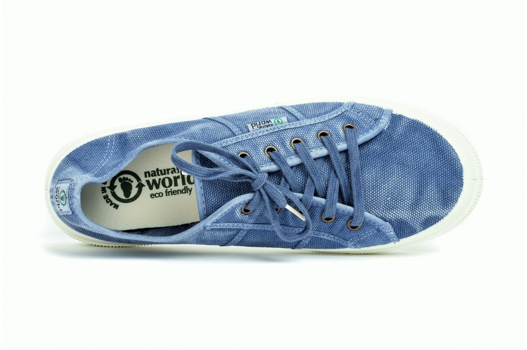 Natural World - 100% confectionate manual in Spania, materiale naturale 100% eco-friendly, inspirate din dragostea pentru natura. Tenisii Natural World imbina stilul sport cu cel casual, panza de bumbac organic si flexibilitatea talpii facandu-i potriviti atat pentru purtarea zilnica prin oras, cat si pentru activitati in aer liber. Panza rezistenta (necaptusita) din bumbac asigura respiratia piciorului si confort termic. Talpa din cauciuc este vulcanizata (presata la temperatura inalta), fara a se utiliza adezivi, vulcanizarea garantand unirea perfecta intre talpa si fata incaltamintei. La interior, talpa este acoperita cu aceeasi panza din bumbac, folosita la exterior, si are suplimentar un brant detasabil, din spuma moale, cu fata de bumbac organic. Designul lor cu inchidere cu siret cu 5 gauri, le confera un aspect sport si asigura fixarea foarte buna pe picior. Masuri: 40-46