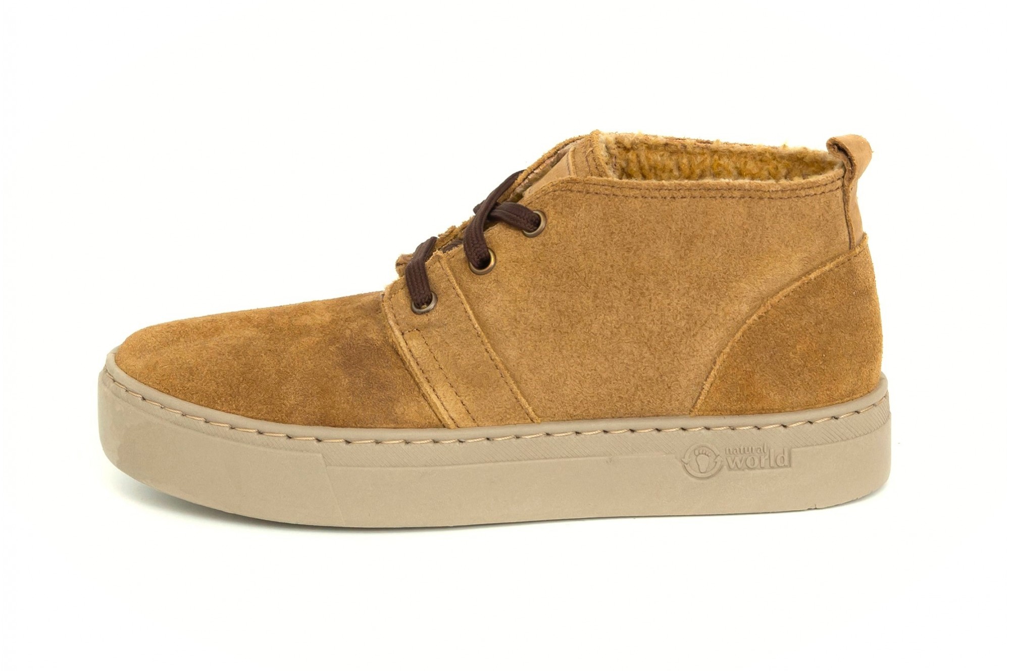 Natural World - confectionate manual in Spania, materiale naturale 100% eco-friendly, inspirate din dragostea pentru natura. Ghete din piele intoarsa prelucrata si vopsita ecologic, care imbina aspectul modern cu confortul. Sunt captusite cu lana naturala si au brant detasabil, din spuma moale, cu fata acoperita cu material textil, iar talpa este confectionata din cauciuc. Inchidere cu siret, 3 gauri. Masuri: 36-41