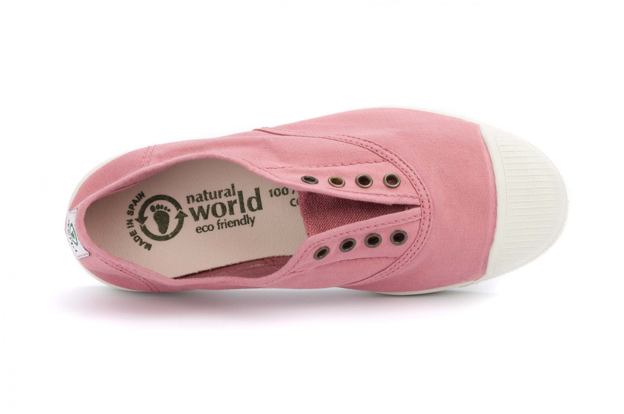 Natural World - 100% confectionate manual in Spania, materiale naturale 100% eco-friendly, inspirate din dragostea pentru natura. Tenisii Natural World imbina stilul sport cu cel casual, panza de bumbac organic si flexibilitatea talpii facandu-i potriviti atat pentru purtarea zilnica prin oras, cat si pentru activitati in aer liber. Panza rezistenta (necaptusita) din bumbac asigura respiratia piciorului si confort termic. Talpa din cauciuc este vulcanizata (presata la temperatura inalta), fara a se utiliza adezivi, vulcanizarea garantand unirea perfecta intre talpa si fata incaltamintei. La interior, talpa este acoperita cu aceeasi panza din bumbac, folosita la exterior, si are suplimentar un brant detasabil, din spuma moale, cu fata de bumbac organic. Designul lor clasic, cu o banda elastica in zona centrala, permite incaltarea usoara si mularea lor pe picior. Suplimentar, pot fi folosite si sireturile cu care sunt prevazuti. Masuri: 35-42