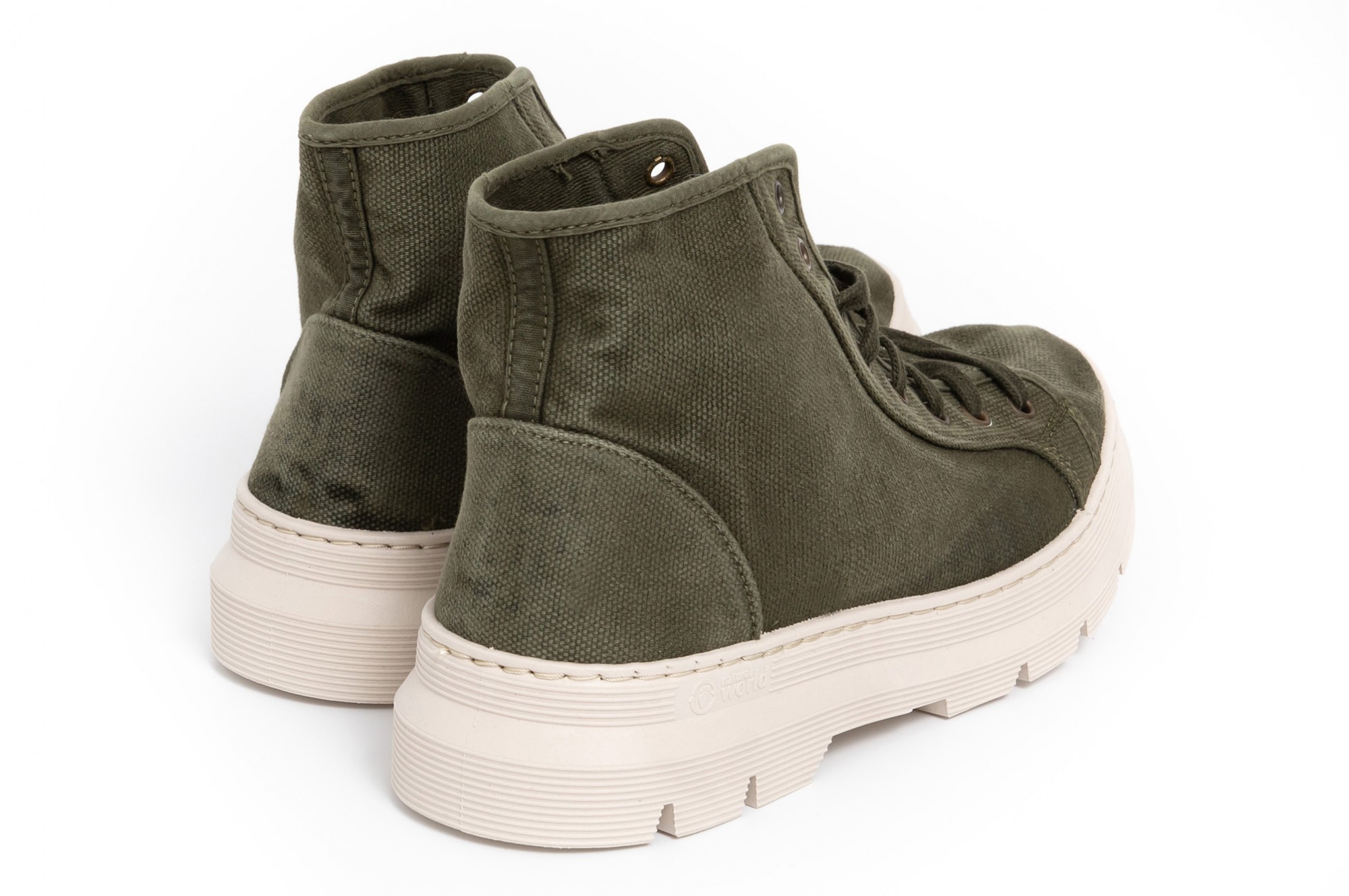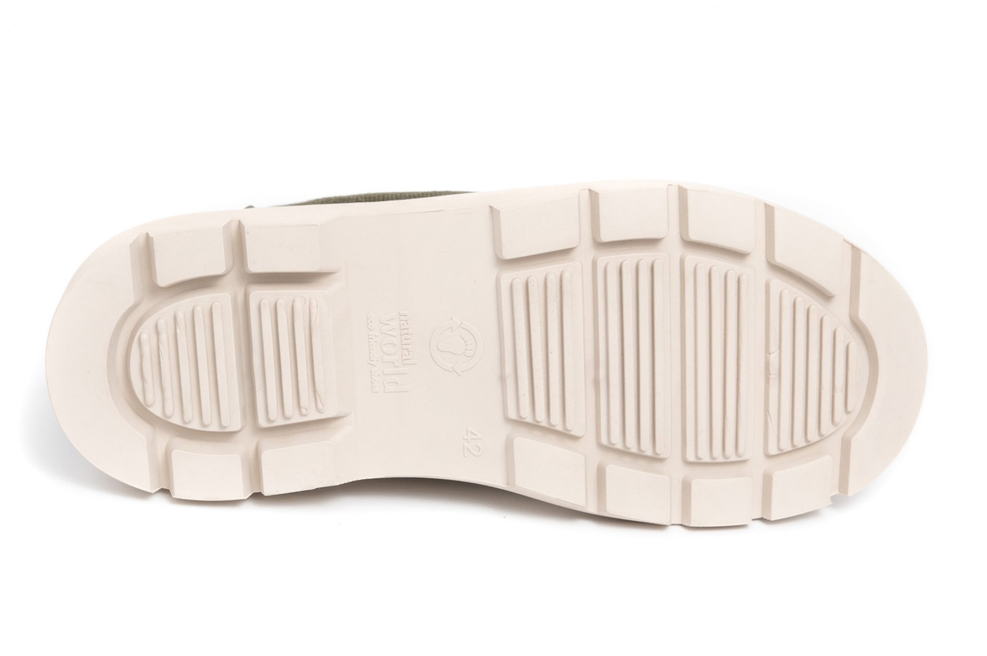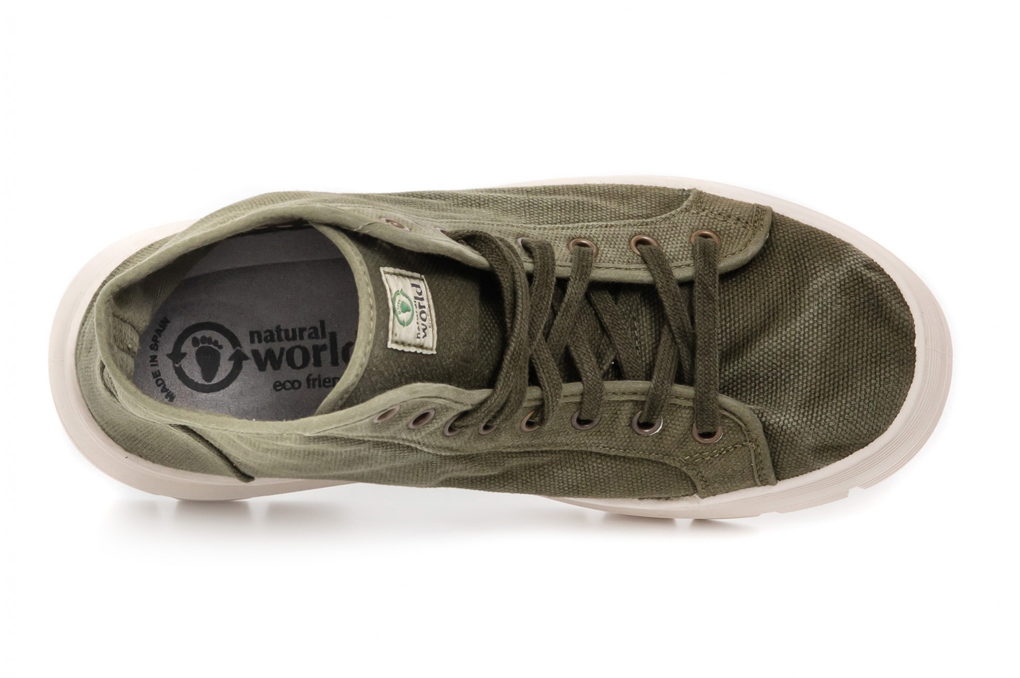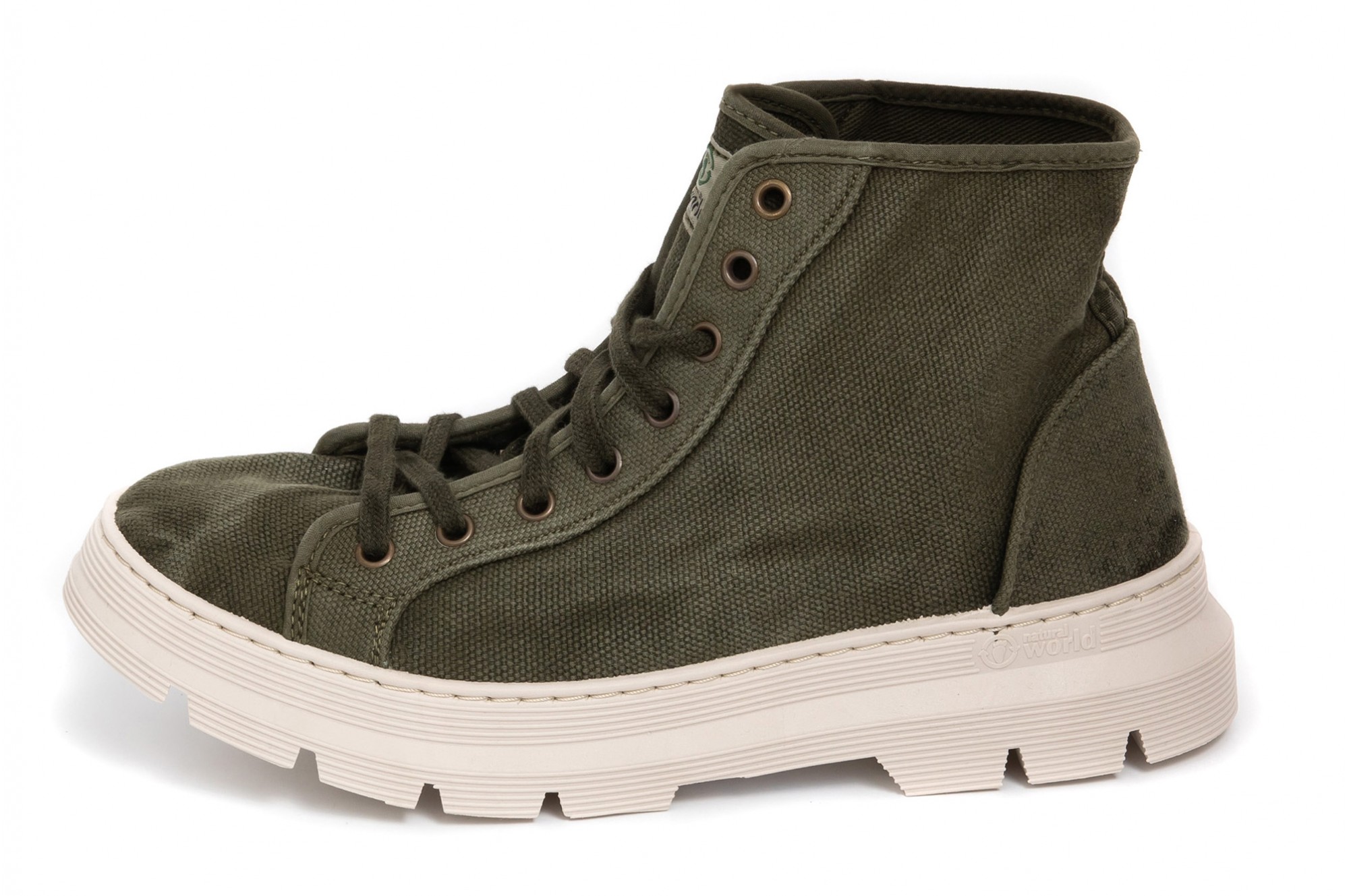 Natural World - 100% confectionate manual in Spania, materiale naturale 100% eco-friendly, inspirate din dragostea pentru natura. Ghetele Natural World imbina stilul sport cu cel casual, panza de bumbac organic si flexibilitatea talpii facandu-le potrivite atat pentru purtarea zilnica prin oras, cat si pentru activitati in aer liber. Panza rezistenta (necaptusita) din bumbac asigura respiratia piciorului si confort termic. Talpa din cauciuc flexibil, cu profil mare, asigura confort si siguranta, indiferent de tipul terenului. Designul lor cu inchidere cu siret cu 8 gauri, le confera un aspect sport si asigura fixarea foarte buna pe picior. Masuri: 36-46