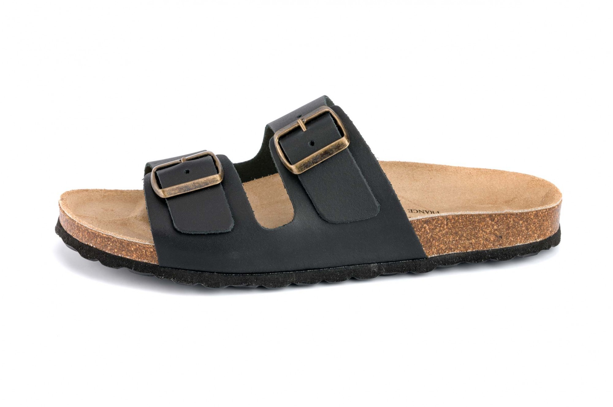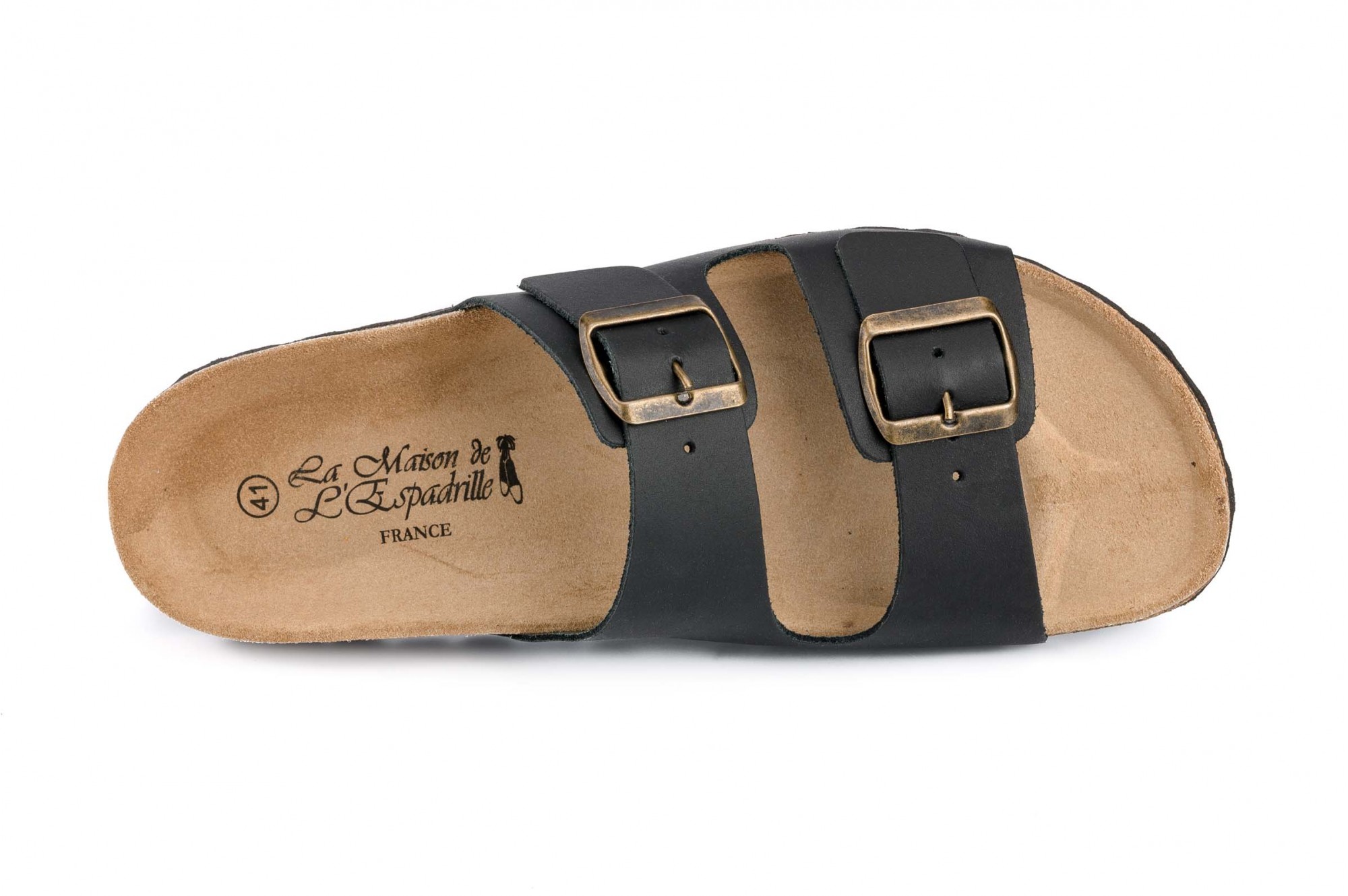 Papuci cu aspect contemporan, produsi artizanal in sudul-vestul Frantei, aproape de Biarritz, intr-o firma cu o traditie pastrata de peste 50 de ani in aceeasi familie. Au fetele confectionate din piele naturala, moale si placuta la atingere, dar in acelasi timp rezistenta, si cu talpa usoara, dintr-un material care imita pluta, avand la exterior un strat de protectie din cauciuc care ii sporeste durabilitatea. Forma anatomica si acoperirea cu piele naturala poroasa a interiorului talpii ofera un confort deosebit la purtare. Partea superioara a papucilor este reglabila, fiind prevazuta cu doua catarame. Masuri: 39-46